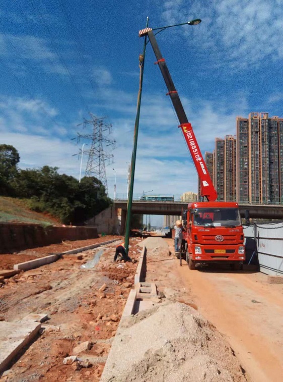 這項工程建設其難度和復雜程度相對要大和技術質量要求高,主要是原有電力、燃氣、自來水、通迅、光纜隱蔽工程復雜,新舊亮化設施要交替切換不能影響夜間行車安全。因其主星沙區內主要南北通行干道,施工時不能停止日常車輛通行,工期只有180天,技術要求最大難點 在路燈點位基礎坐標偏差要控制在10mm,保證路燈與后段土建施工和園建施工的主要道路、路口、人行道的設計控制標高沒有偏差。我方采用GNSS大地高精度測量儀與總包公司和其它專業公司緊密配合,實現了零誤差的準確率坐標位置。