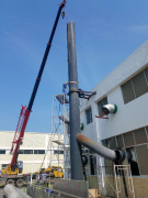 康寶萊星沙工廠鍋爐煙囪使用已達五年之多,原設計為5mm厚普通碳鋼材質,支管ф600mm,主管ф800mm,垂直高度16m。因在2013年經過鍋爐節能改造后,鍋爐排放的煙氣為低溫煙氣(《75°),煙道內冷凝了大部分冷凝水,而中高溫水是強氧化劑,這樣煙氣冷凝水(含硫)對碳鋼煙囪腐蝕氧化嚴重。經過專業檢測人員對鍋爐煙囪做檢測,只有1.5mm厚 ,存在倒塌安全隱患,并且煙囪頂帽固定支桿腐蝕嚴重,有被狂風刮落的安全隱患。由于存在以上的安全隱患,康...