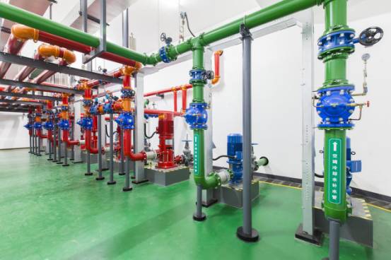 消防泵房閥門高度一致,油漆涂刷均勻,管道成排成線。