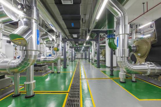 制冷機房布局合理,設(shè)備運行可靠,支架安全、可靠、大氣。