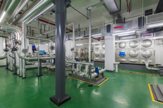 空調(diào)換熱機房布局合理,設(shè)備運行可靠,支架安全、可靠、大氣,標識清晰。