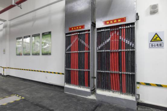 豎向橋架內(nèi)電纜排布有序,標識清晰,防火封堵到位。