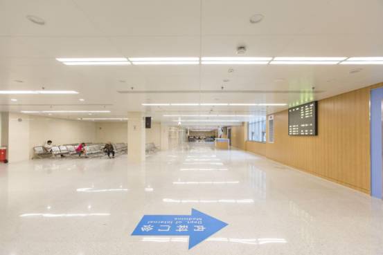 診室候診區(qū)燈具、噴頭、風口、煙感排布精細美觀,橫成排、豎成行、斜成線,錯落有致。