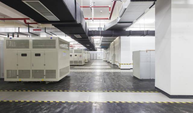 配電房內(nèi)配電柜安裝高度一致,成排成線。