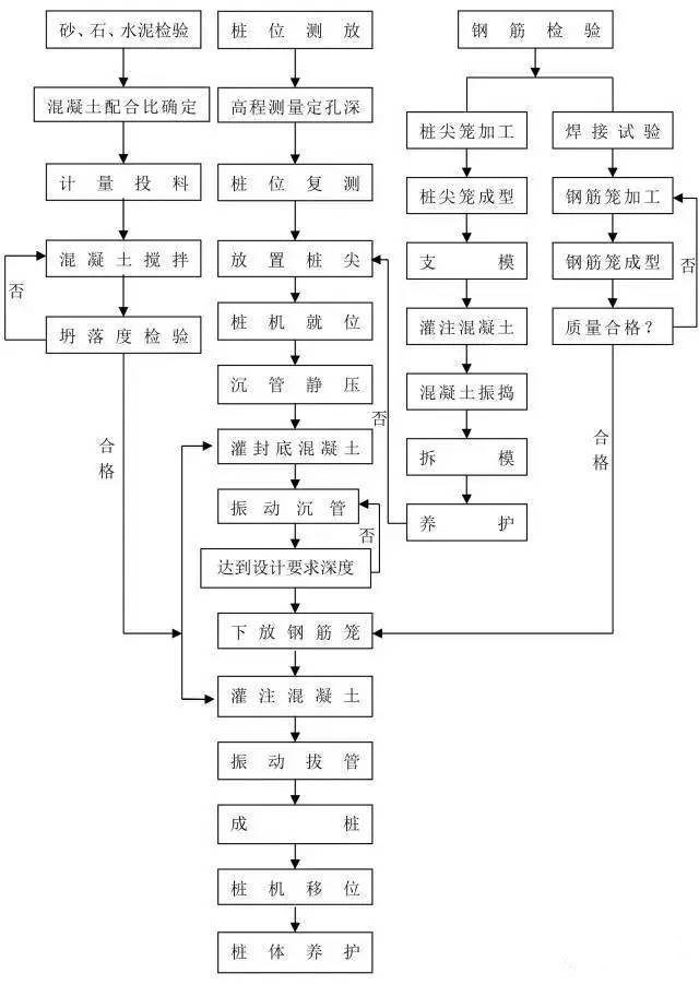 樁基是壹種古老的基礎型式。樁工技術歷經了幾千年的發展過程。無論是樁基材料和樁類型,還是樁工機械和施工方法等都有了巨大的發展,已形成了現代化基礎工程體系。在有些情況下,采用樁基能大量減少施工現場工作量與材料之消耗。由于樁基種類繁多,施工工藝差異大,在此總結整理十四種樁基施工流程圖,僅供對比參考之用。