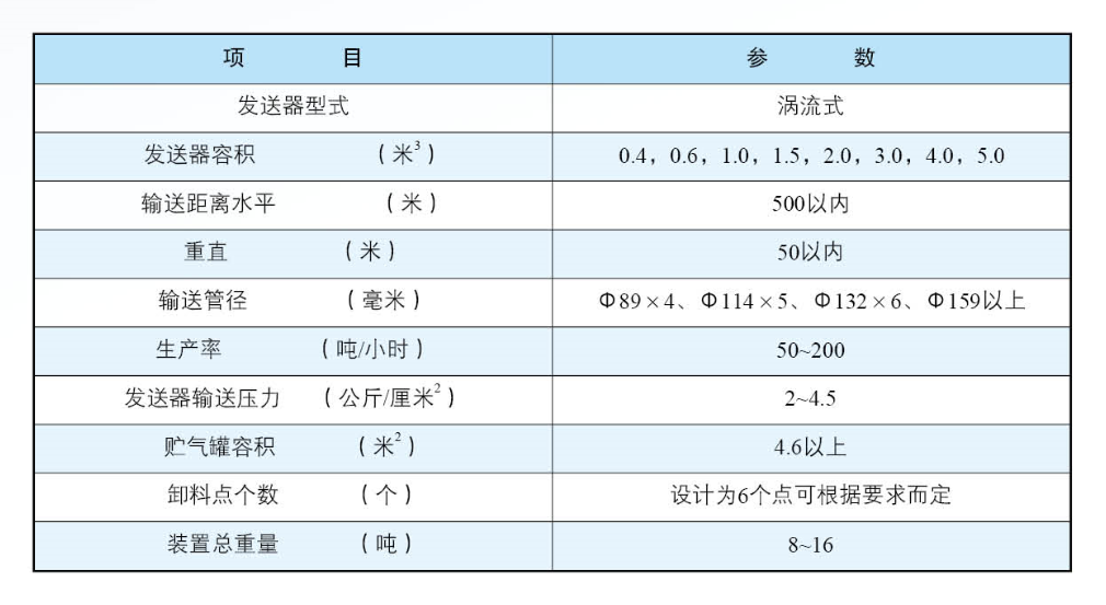 ZY91系列渦流式氣力輸送系統主要技術參數