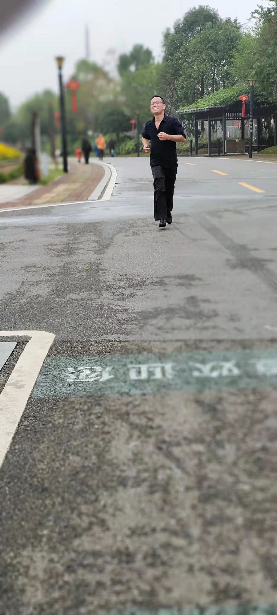 看,這就是冠軍選手的英姿!財務部的袁經理沖在了最前面,僅用1小時09分52秒率先到達了終點!