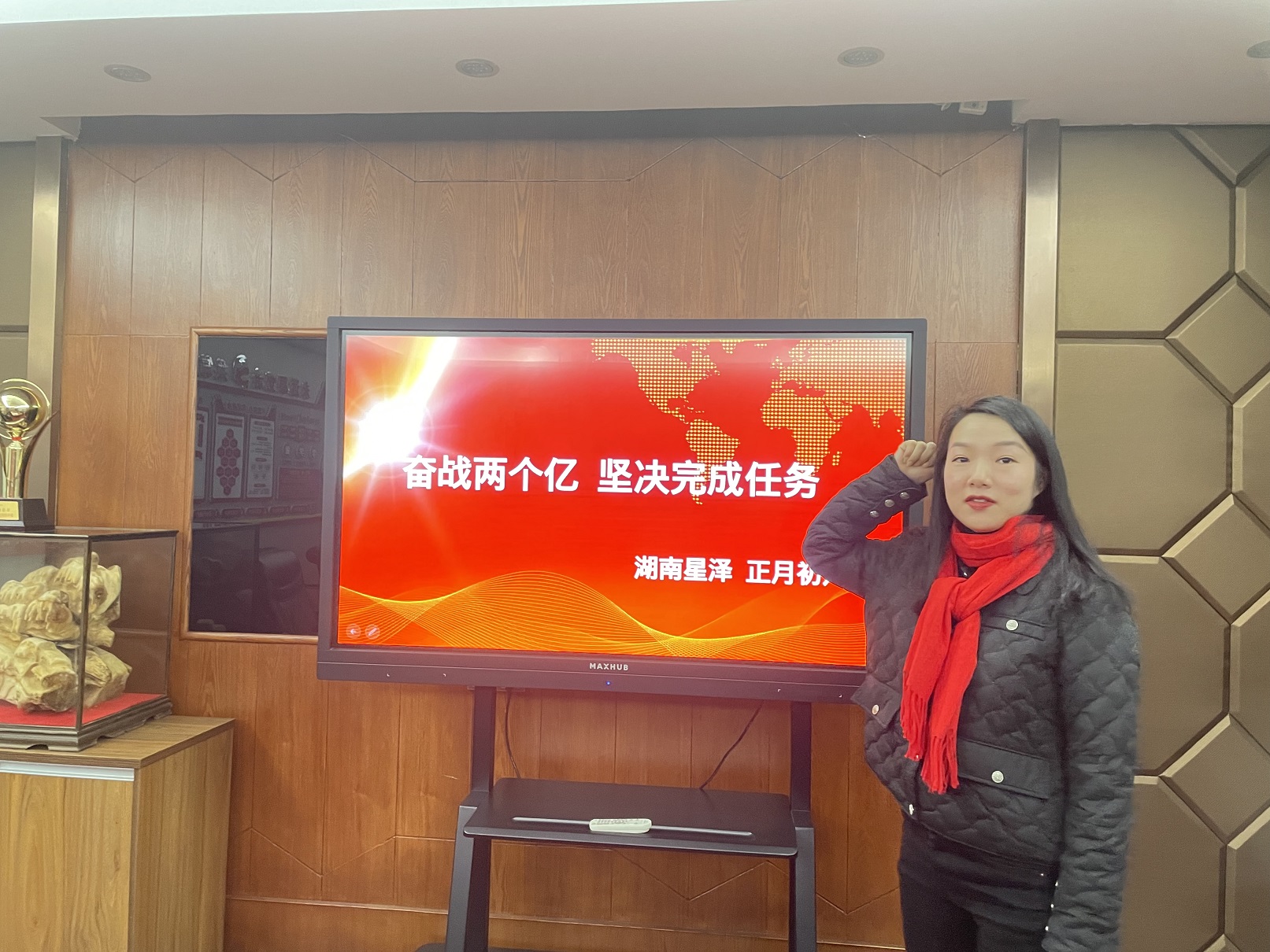 正月初八我們開工啦!伴隨著雄壯的國歌聲,湖南星澤 公司2023年新年茶話會正式開場,茶話會上公司宋總為每位員工派發了新年紅包,每位參會人員分享了一個勵志或是正能量的故事,公司總經理孫總致新年賀詞并提出新年展望定下公司新年的奮斗目標,2023年公司的業績目標為兩個億,每位員工各分得業績任務,并紛紛上臺宣誓言。