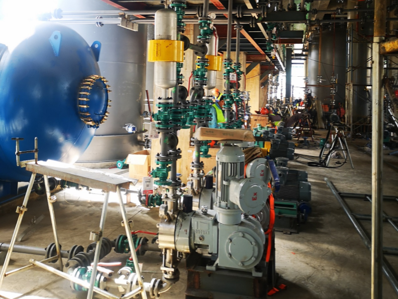 一進入項目現場,廠內生產設備運轉的聲音就如一首生命進行曲無比動聽,仿佛一個工業巨人充滿無限生機和永恒的力量。項目經理粟逵介紹鋼結構平臺、各種塔器罐體、各類工藝管道、電動閥門,電氣儀表自動控制工藝的紛繁復雜,工程量之巨大。現場安裝與生產同時進行,安全控制要求極為嚴格,一個煙頭罰款 4000 元的教訓讓大家時刻保持警惕。目前現場施工人員 130 人,由于甲方設備供貨進度問題還不能大上人馬。好在星澤的這支施工隊伍個個都是行家俚手,經驗豐富的干將,對工藝管道設備安裝技術輕車熟路,有力地保障了施工進度。