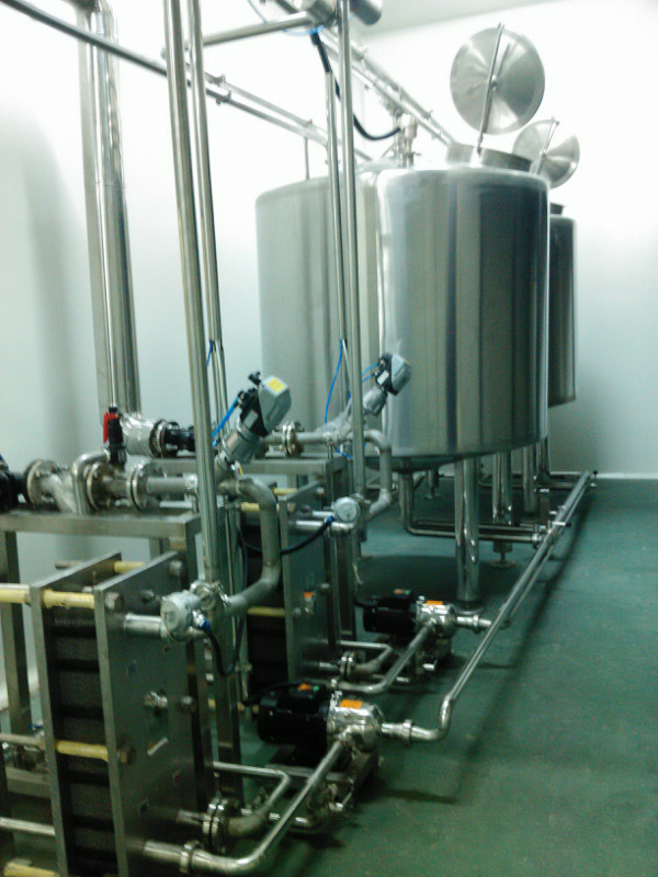 罐體為上下封頭型(封頭均經旋壓加工),設有夾層。采用軸向流攪拌,內表面采用電解鏡面拋光。罐體頂部設進水口、加料口、回流口、消毒口、清洗球、人孔,并安裝0.22μm空氣呼吸器及攪拌系統。罐體底部設出水口、排污口、取樣口、溫度探頭、液位傳感器。配控制柜操作。